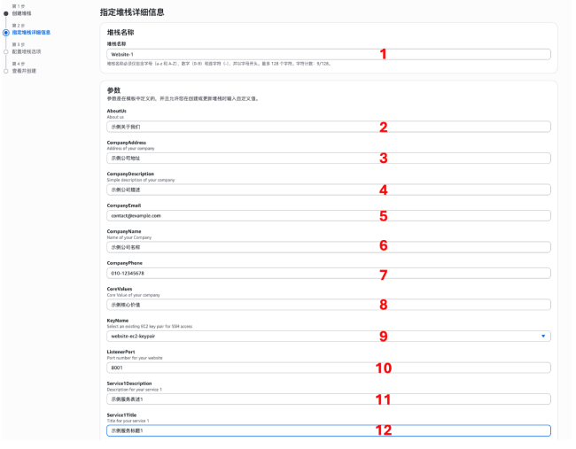 在本教程中,您将使用 Amazon CloudFormation 一键式的快速部署公司官网页面。