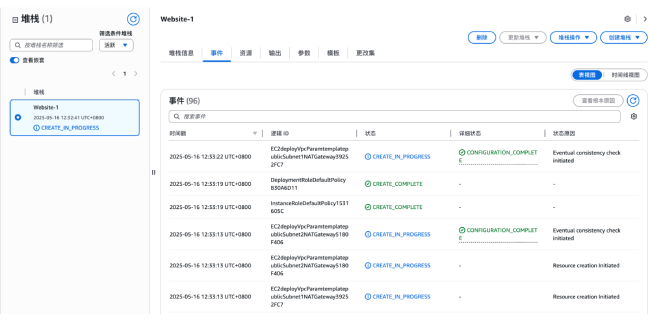 在堆栈创建过程中,可以在事件页面实时查看创建进度。