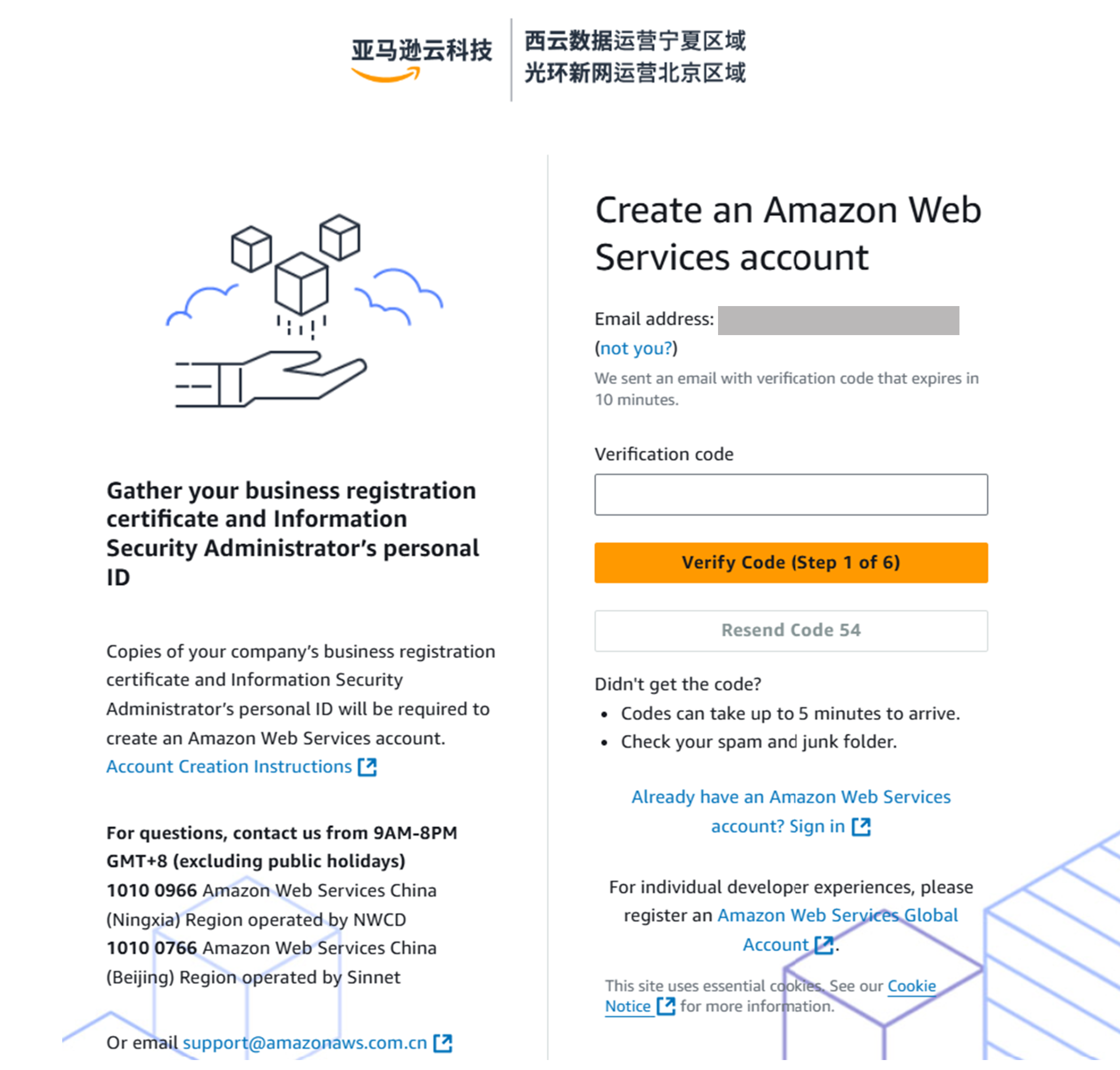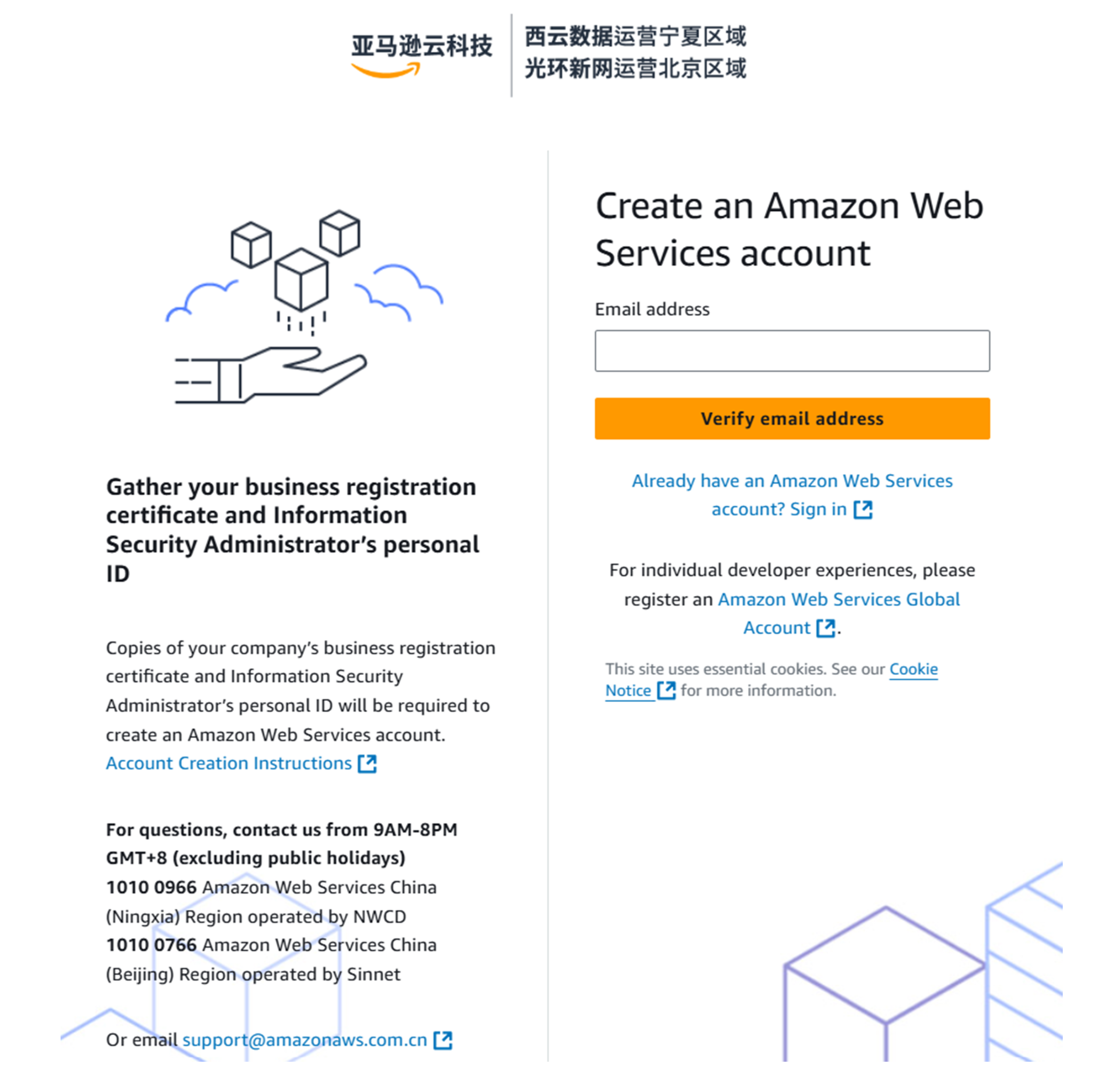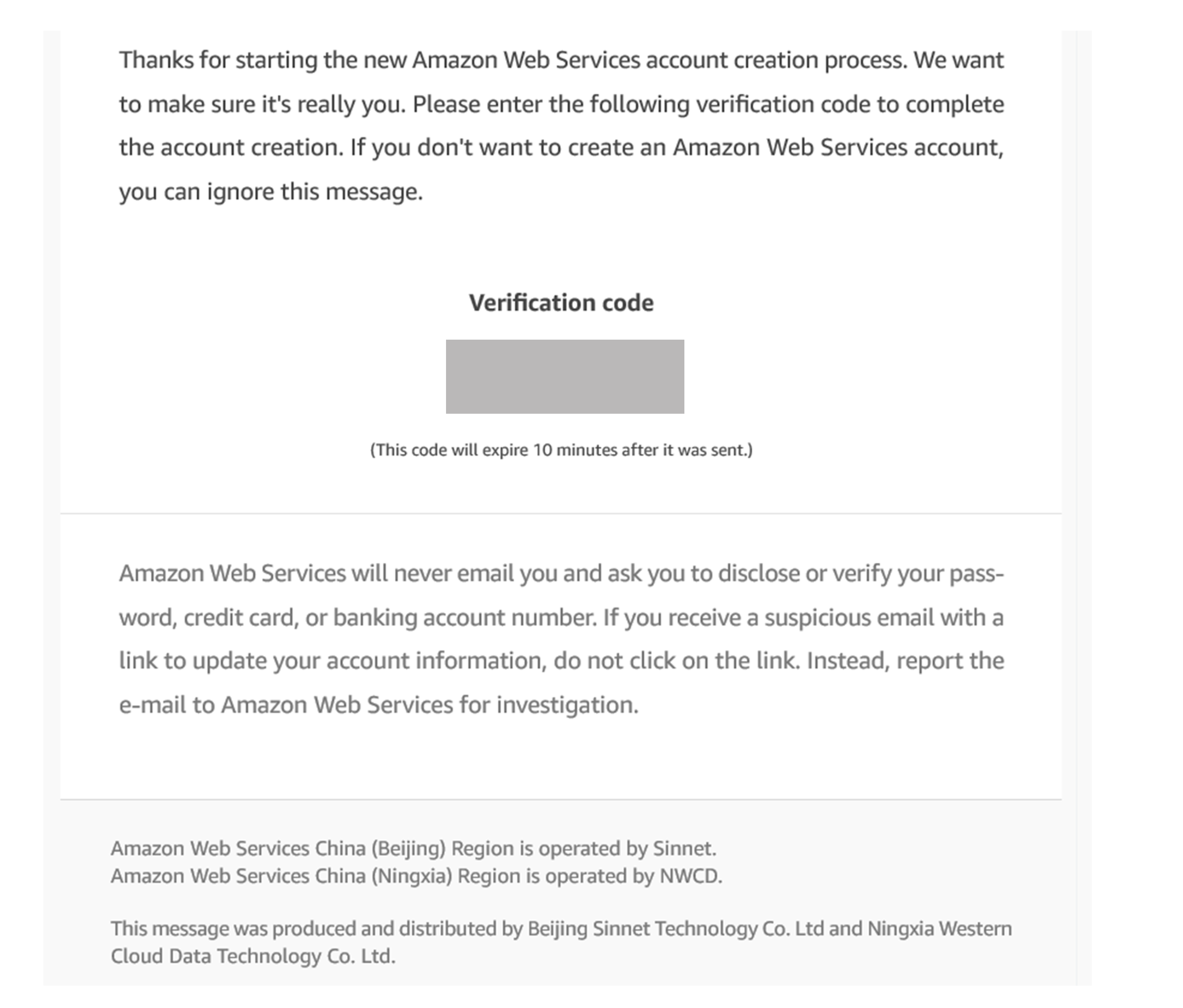 - Check email from ”Amazon Web Services“ in your registered Email address, and it ends with @amazonaws.cn.