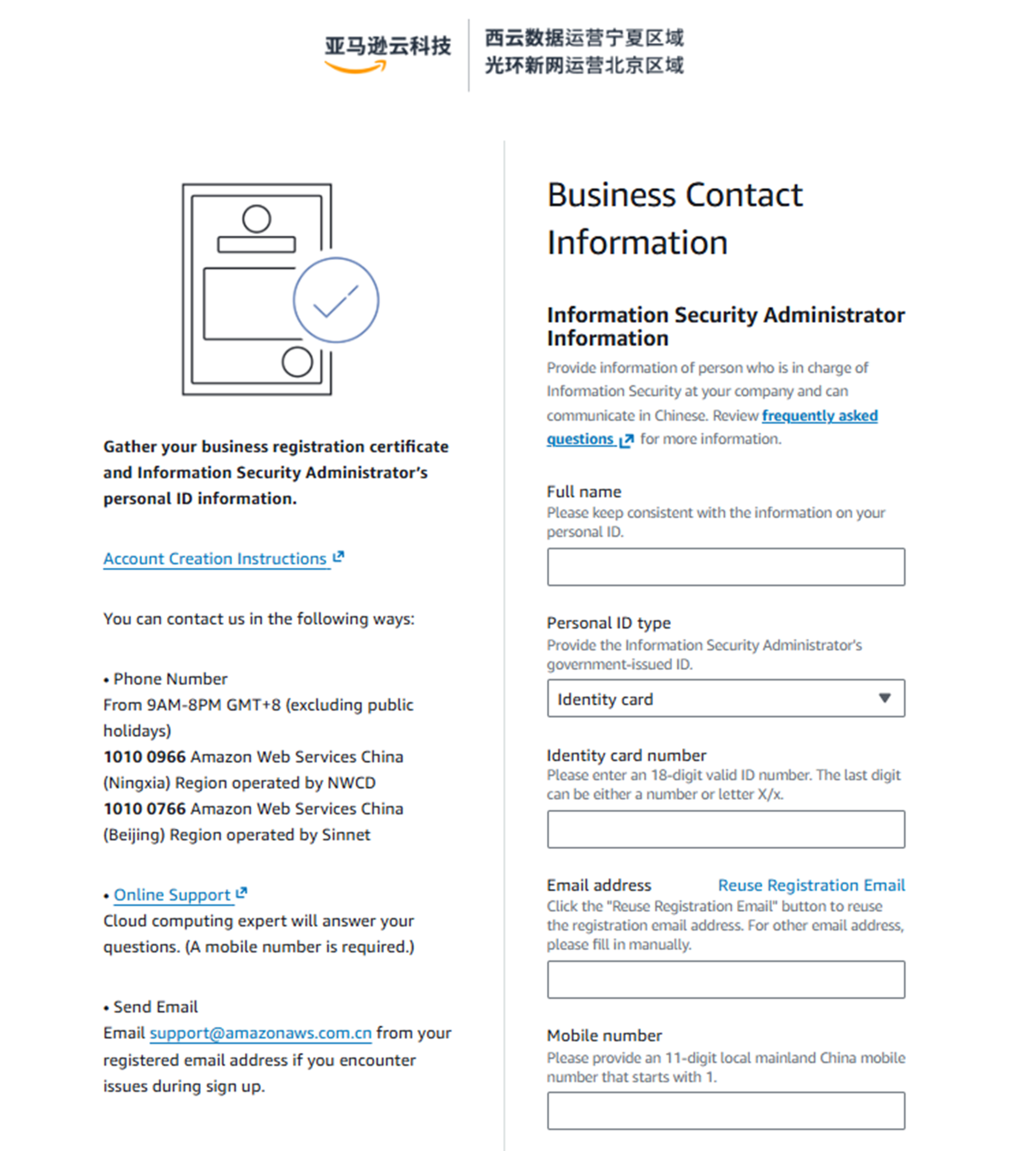 Open allPlease note: The name must match the information on your personal ID card, a valid email address (you may reuse the registration email), and a valid mainland China mobile phone number (11 digits starting with 1). If you select another type of identification, you will need to upload a scanned copy of the document.