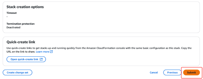 Please review your deployment information on the current page. After confirming all details are correct, click the "Submit" button in the bottom right corner of the page to submit your deployment.