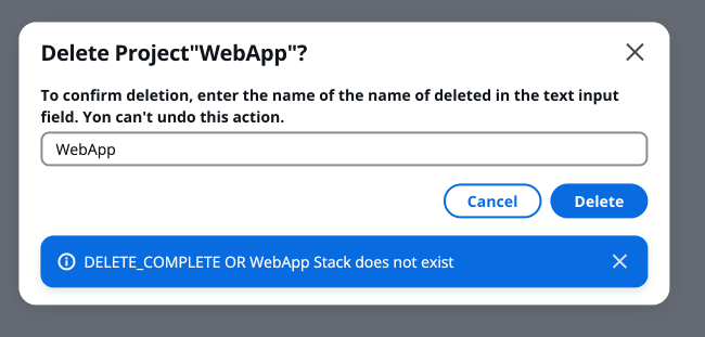 Open allPlease empty the contents of the corresponding Amazon S3 bucket first, and then proceed with deleting the stack.