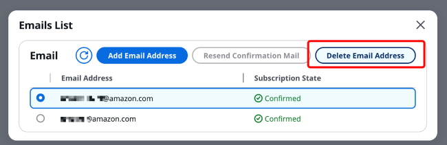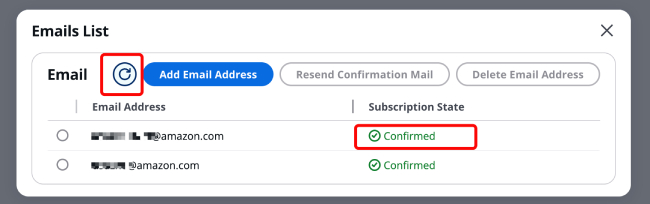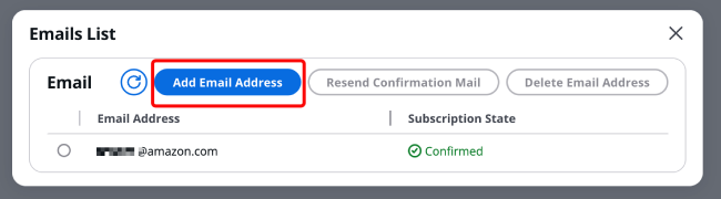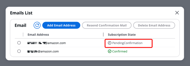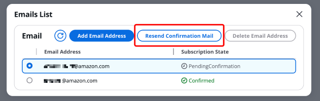 If the subscription invitation email was accidentally deleted before confirming the subscription, you can select that Email address and click [Resend Confirmation Email].