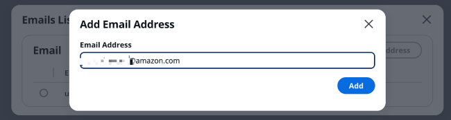After clicking "x Email subscriptions", a pop-up window titled "Email Notification List" will appear as shown in the image. Click [Add Email].