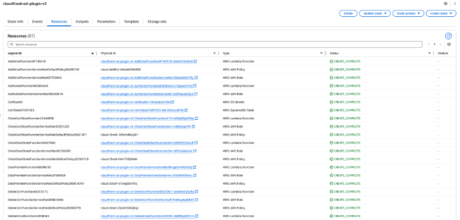 Stack Name: Name your stack, for example "cloudfront-ssl-plugin-v2". The stack name must be unique within the region for your current account.