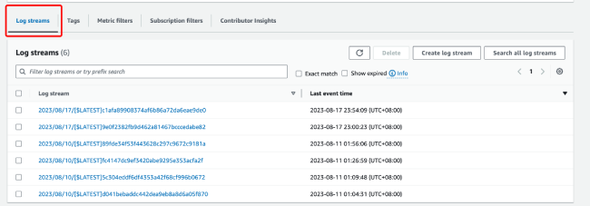 3. Based on the trigger time, look at the log streams tab at the bottom of the page and click to view the log information to troubleshoot the execution logs.