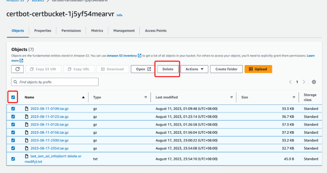 If the certificate is updated successfully, the certificate stored in IAM SSL storage will be automatically deleted to save quota, but the backup certificate in the Amazon S3 bucket will not be deleted.