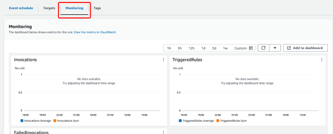 In the resources tab of the stack, search for "Events::Rule", select the rule starting with CertScheduledRule, click to enter, and view the monitoring tab. Choose the time period to check the Invocation status.