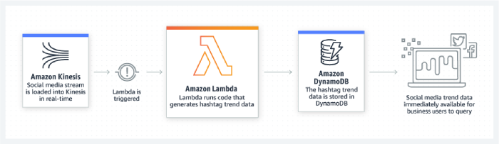 You can use Amazon Lambda and Amazon Kinesis to process real-time streaming data for application activity tracking, transaction order processing, click stream analysis, data cleansing, metrics generation, log filtering, indexing, social media analysis, and IoT device data telemetry and metering.