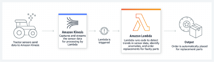 You can build backends using Amazon Lambda and Amazon Kinesis for Internet of Things (IoT) device data telemetry and analysis.