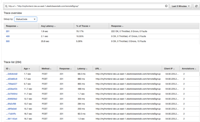 Open allAmazon X-Ray lets you add annotations to data emitted from specific components or services in your application. You can use this to append business-specific metadata that help you better diagnose issues. You can also view and filter data for traces by properties such as annotation value, average latencies, HTTP response status, timestamp, database table used, and more.