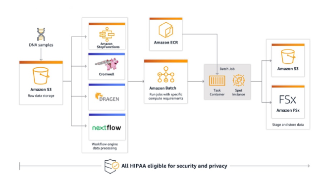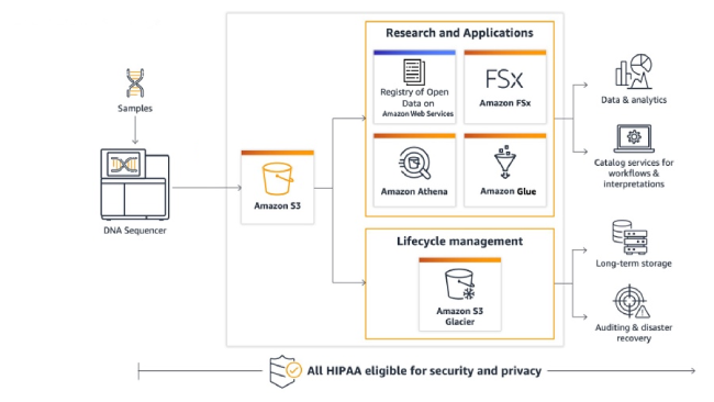 为了应对这些挑战,生命科学组织正在转向亚马逊云科技,以提高灵活性和速度,并经济高效地发展运营,以满足不断增长的需求。与此同时,亚马逊云科技也在帮助他们保持合规性,遵守隐私和安全最佳实践,以帮助保护敏感数据的安全。随着基因组学进入临床实践,亚马逊云科技正在帮助组织缩短周转时间,以快速交付结果,并跟上不断增长的吞吐量要求。