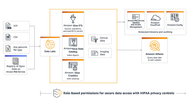 基因组学研究和解释的成功,往往取决于从大规模人群中获取数量众多、多种多样的多模式数据集。随着研究涉及到的协作者和利益相关者变得越来越多,借助亚马逊云科技,企业或组织得以对多组学数据集进行协调,并对整个全球基础架构中的强大数据访问控制和权限进行管理,从而得以维护数据的安全。亚马逊云科技使存储、查询和分析基因组数据以及与临床信息链接的功能得以简化。